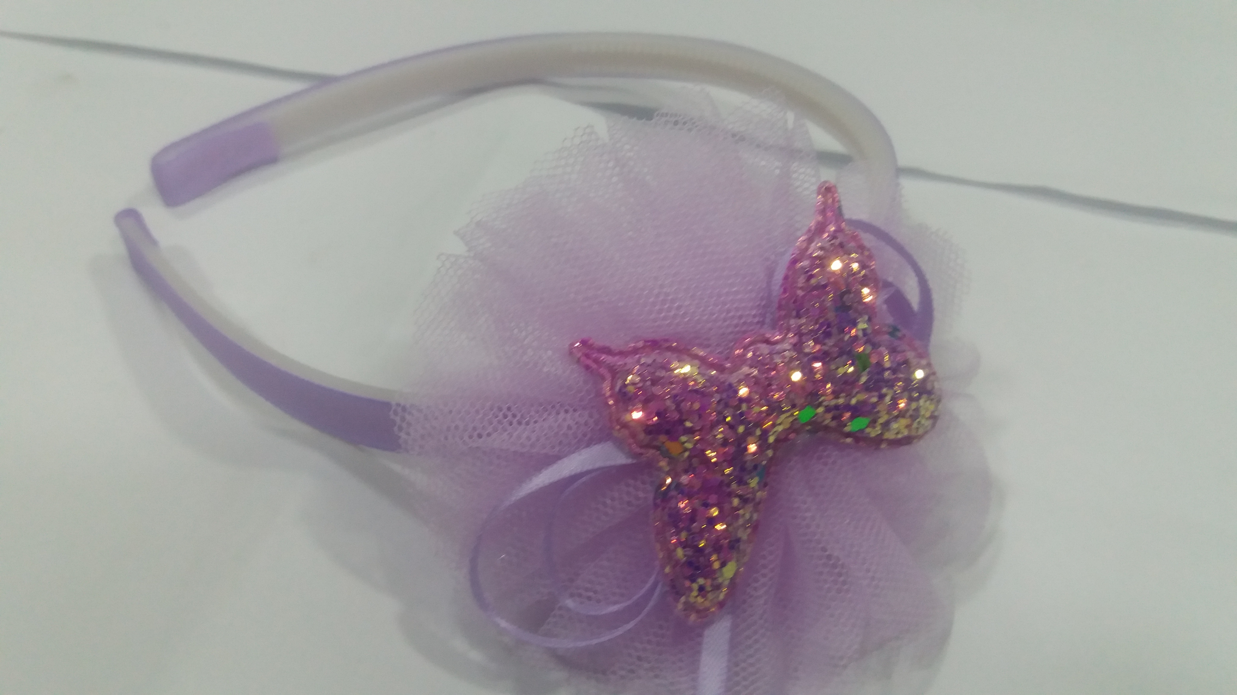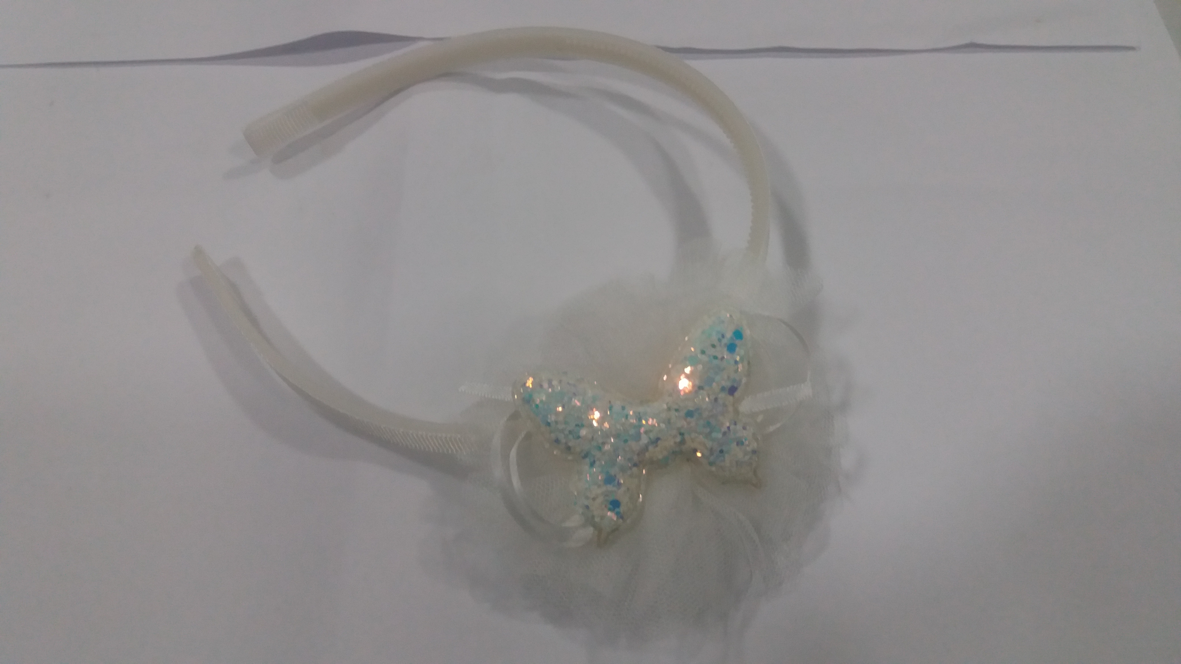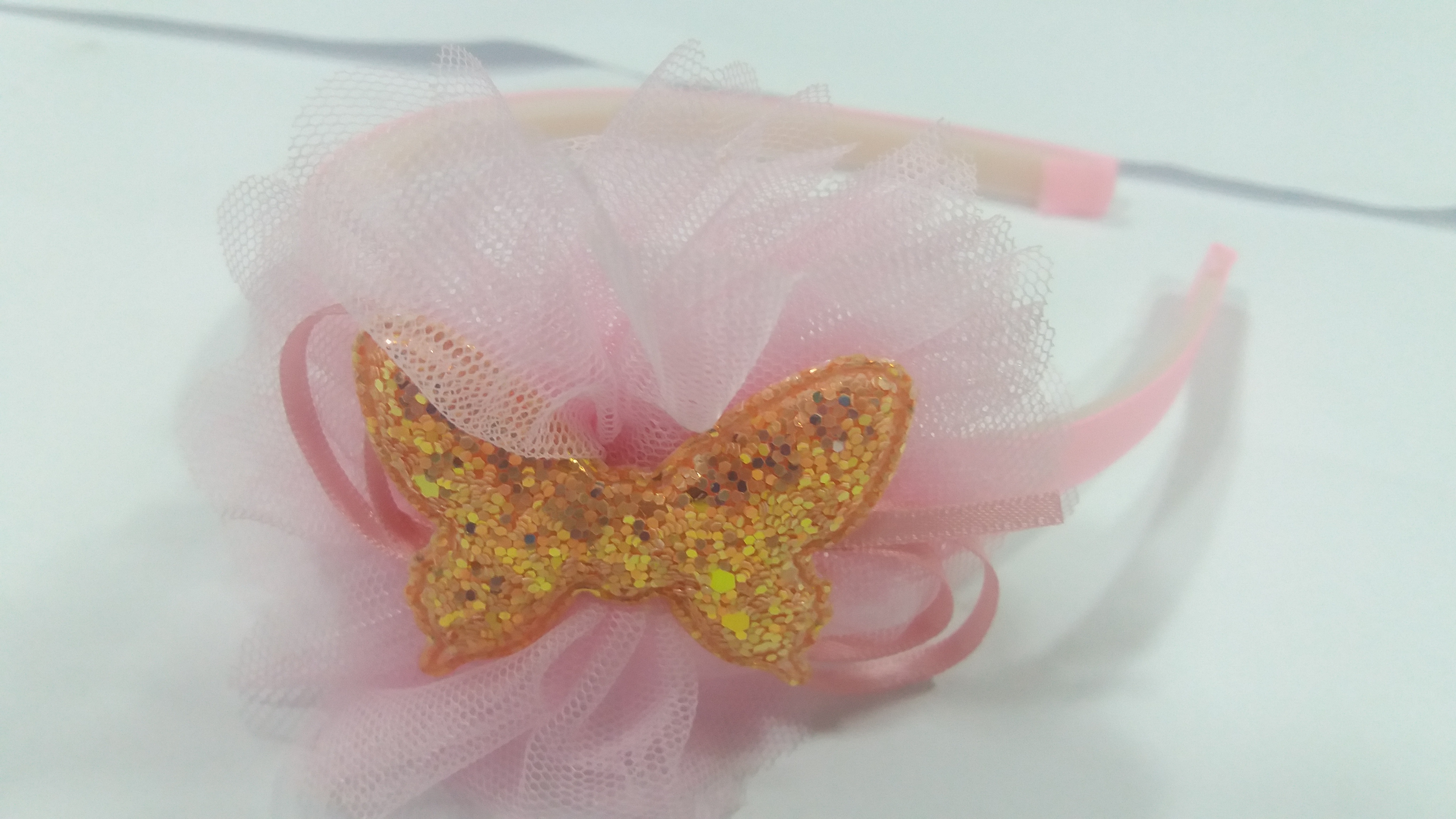 Tiara tecido detalhes em renda + borboleta em glitter s-187