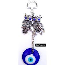 Chaveiro olho grego com corujas